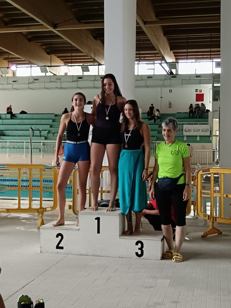 Medaglia d’argento per Pranio Maria nei 50 dorso; Tomei Anna e Cagnin Federico nei 50 Stile libero e Toppan Alessandro nei 50 delfino.