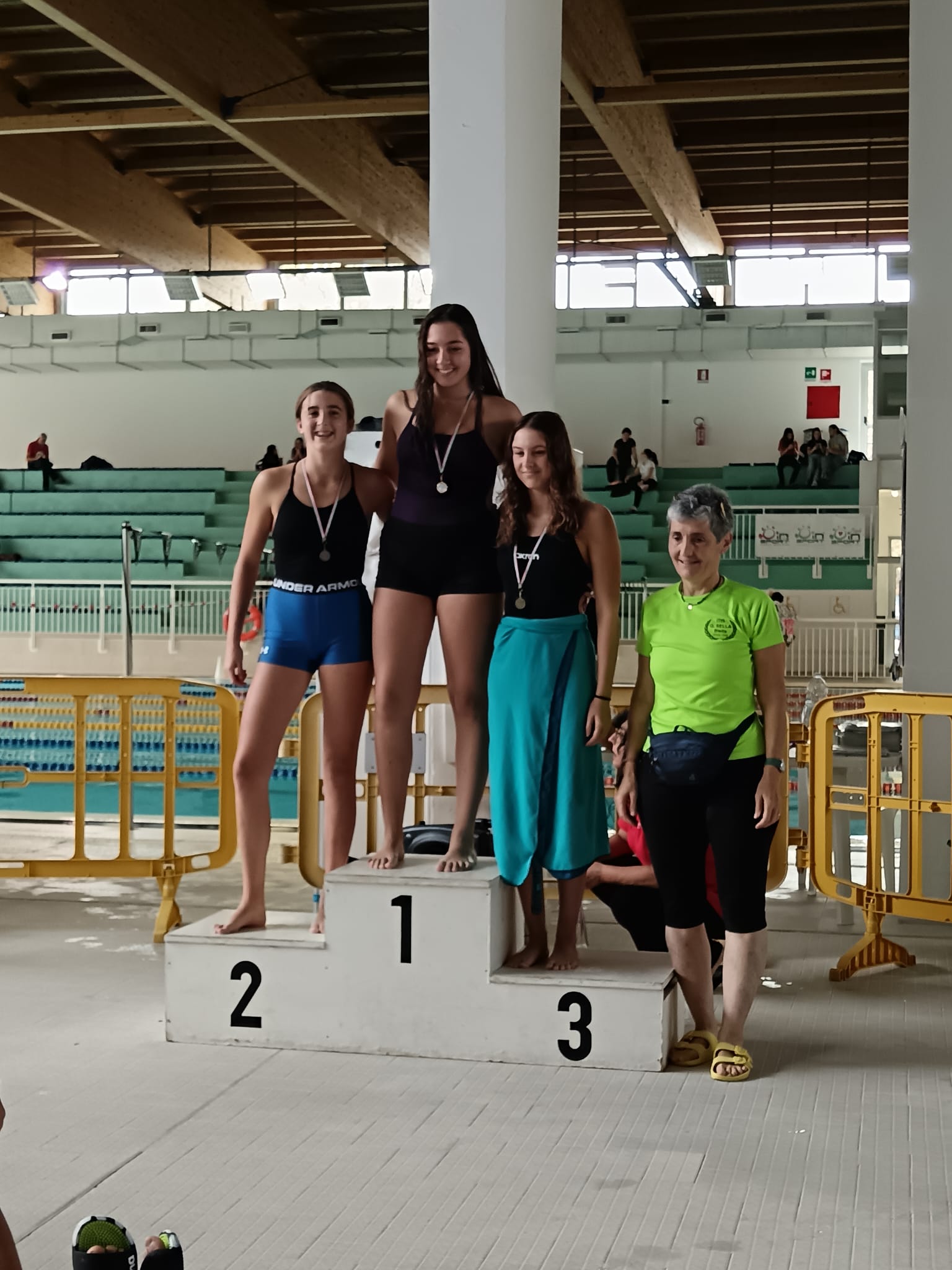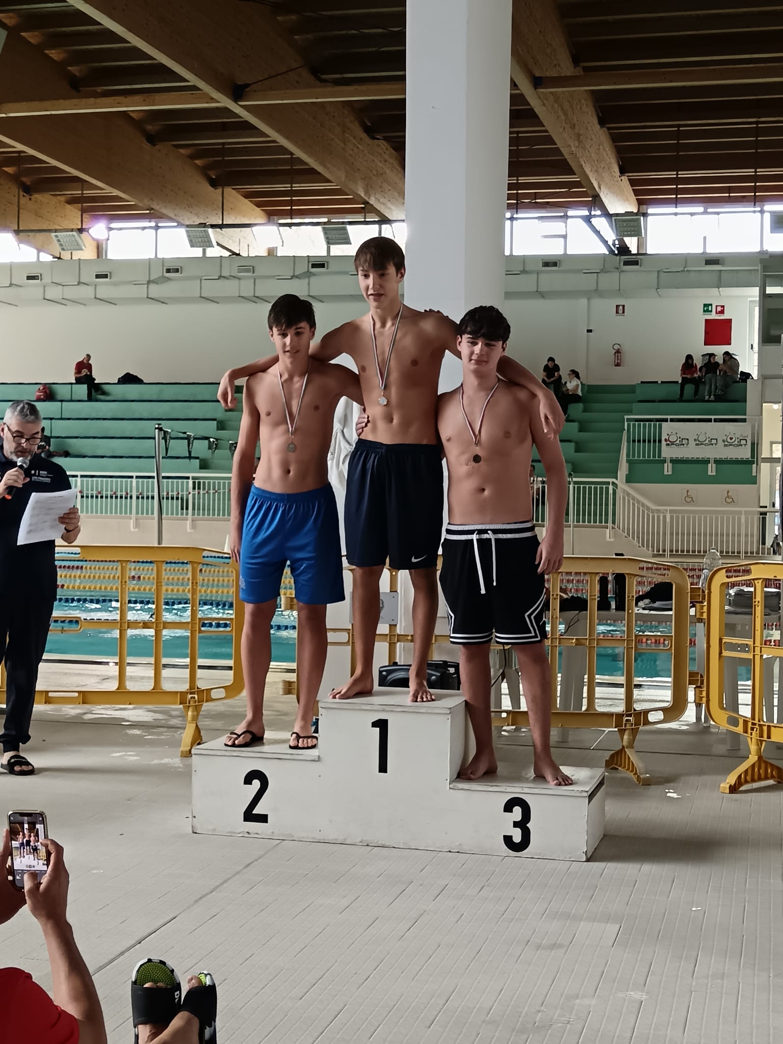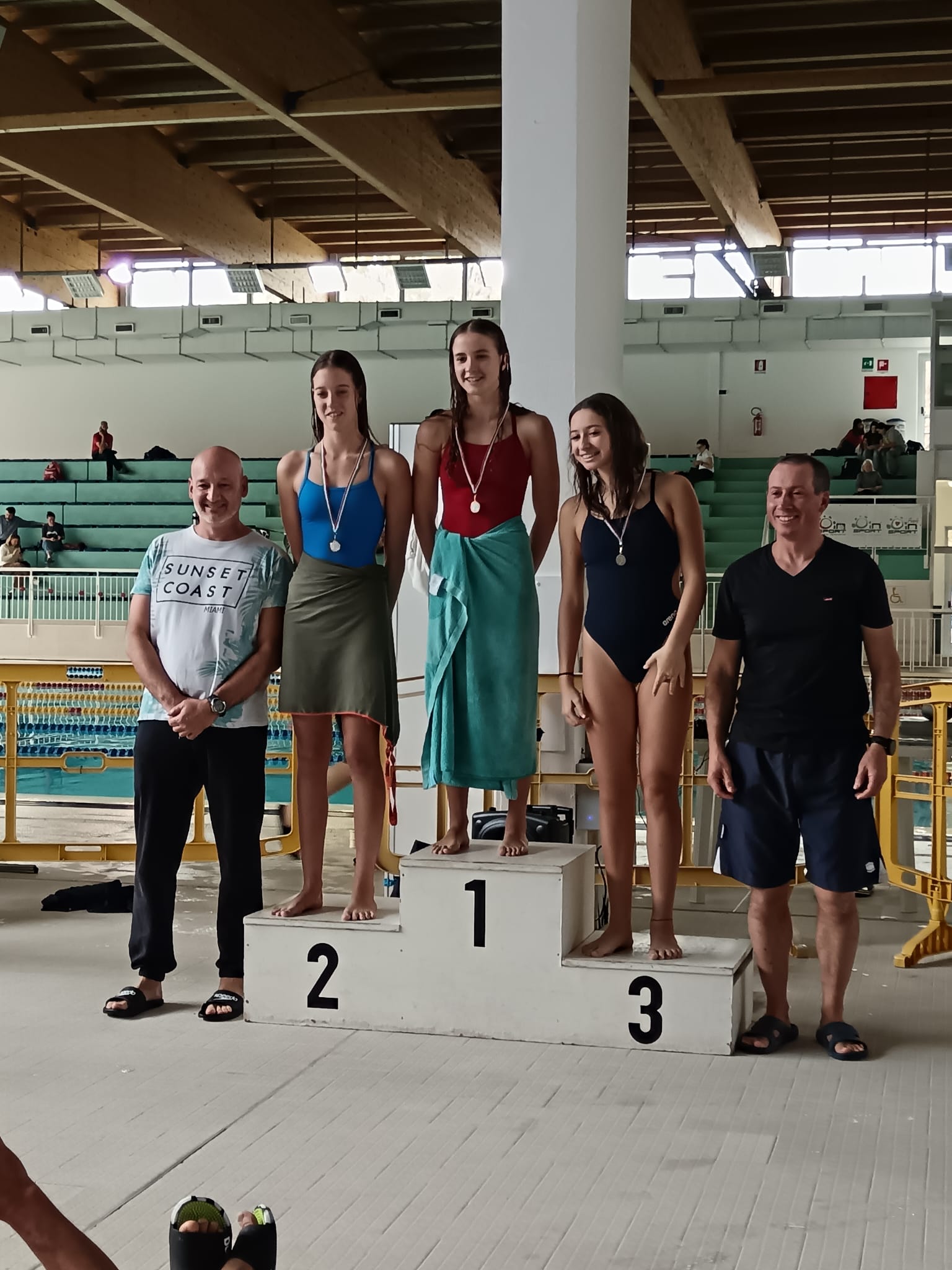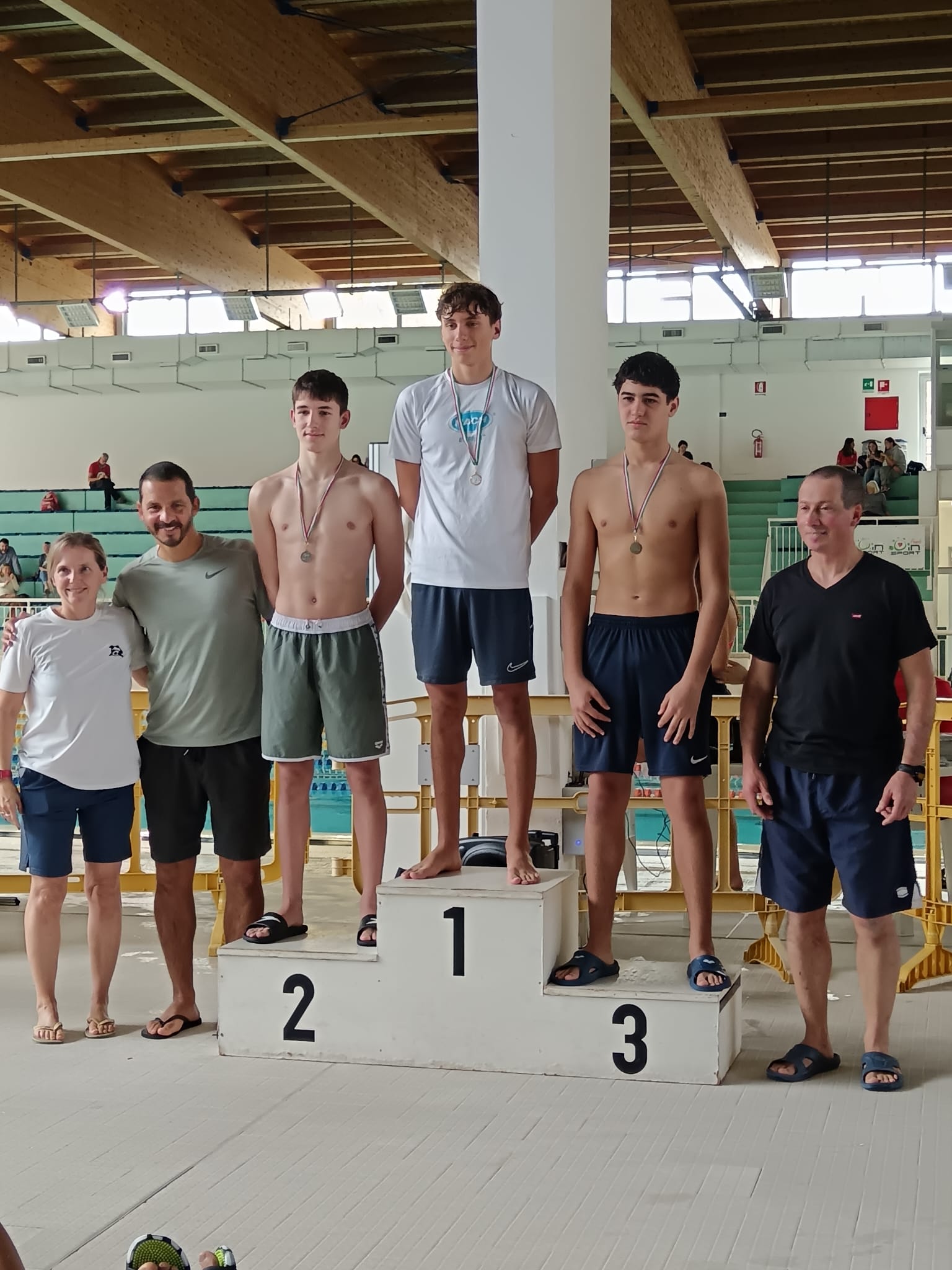 Medaglia d’argento per Pranio Maria nei 50 dorso; Tomei Anna e Cagnin Federico nei 50 Stile libero e Toppan Alessandro nei 50 delfino.