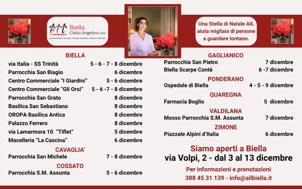 AIL Biella Clelio Angelino è un’organizzazione di volontariato impegnata nell’assistenza ai malati di leucemia e delle loro famiglie nonché nel sostegno e nella promozione della ricerca scientifica per la prevenzione e la cura delle malattie del sangue.
