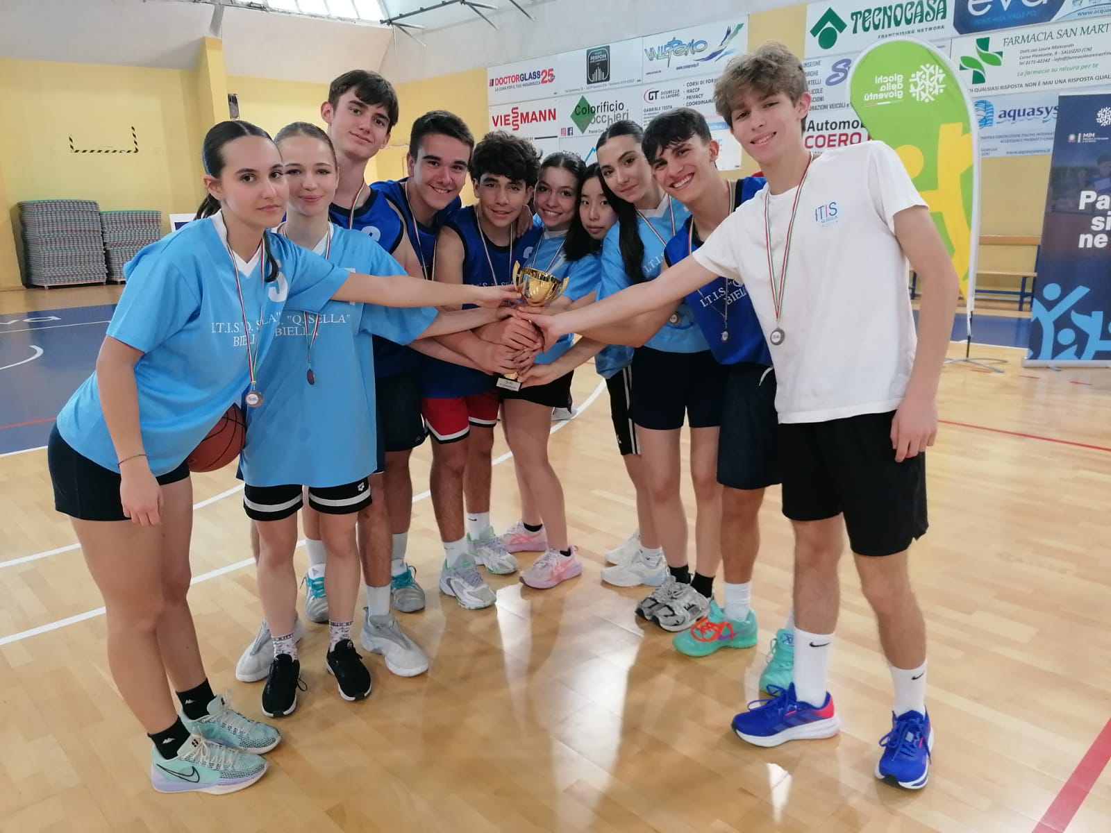 Per il nostro istituto la 3 A LICEO, vincitrice della fase provinciale, ha calcato il parquet del palazzetto di Saluzzo confrontandosi in un girone formato da cinque classi che rappresentavano l’Istituto “Vercelli” di Asti; il “Bodoni” di Saluzzo;” Avogadro” di Vercelli e “Don Bosco” di Borgomanero.